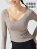 Roupas de Yoga Nova Camiseta Esportiva Nude de Manga Comprida de Alta Elasticidade Feminina Macacão com Bojo Fixo Roupas de Fitness de Alta Qualidade Primavera e Verão