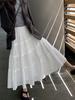 Saia Bolo Branca Saia Pequena Design Feminino Primavera e Verão Cintura Alta Saia A-Line Saia de Comprimento Médio Guarda-chuva Saia de Fada