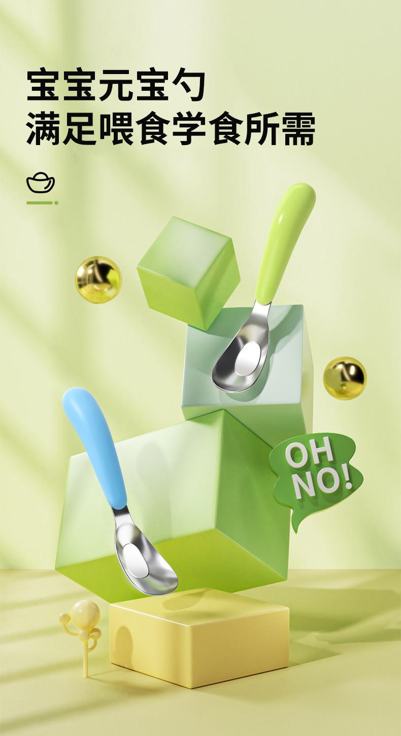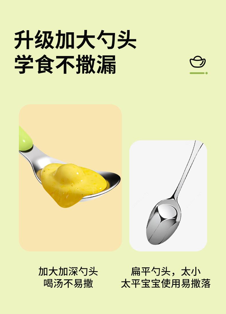 Colher de garfo de treinamento infantil 316 aço inoxidável bebê aprendendo a comer alça curta cotovelo garfo colher talheres infantis