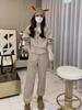 Terno esportivo de lazer de cor sólida de manga comprida feminino outono e inverno 2022 nova moda pulôver com capuz suéter com cordão conjunto de duas peças