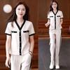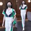 2024 Wear Moda Estilo Esportivo Terno Casual Correspondência de Cores Meia Gola Aberta Pulôver Solto Manga Curta Roupas Femininas de Duas Peças
