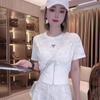 Terno casual coreano camiseta curta 2024 verão novo design senso bainha zíper calças de perna larga conjunto de duas peças para mulheres