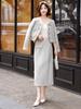 2025 Novo Estilo Outono Moda Feminina Luxo Leve Bainha Emendada Emagrecimento Saia Duas Peças