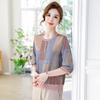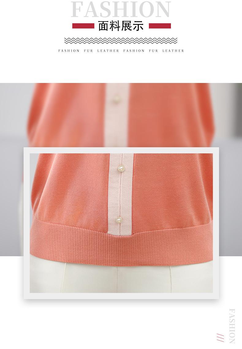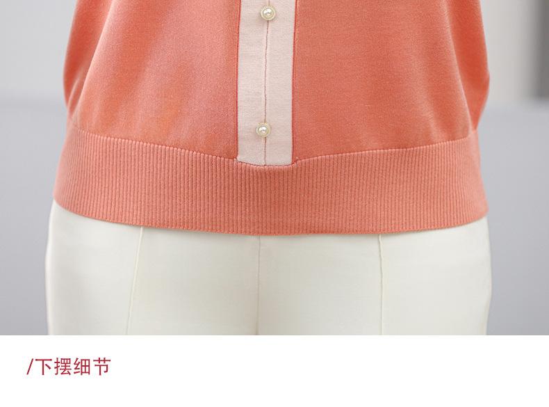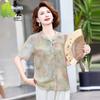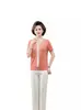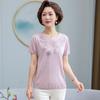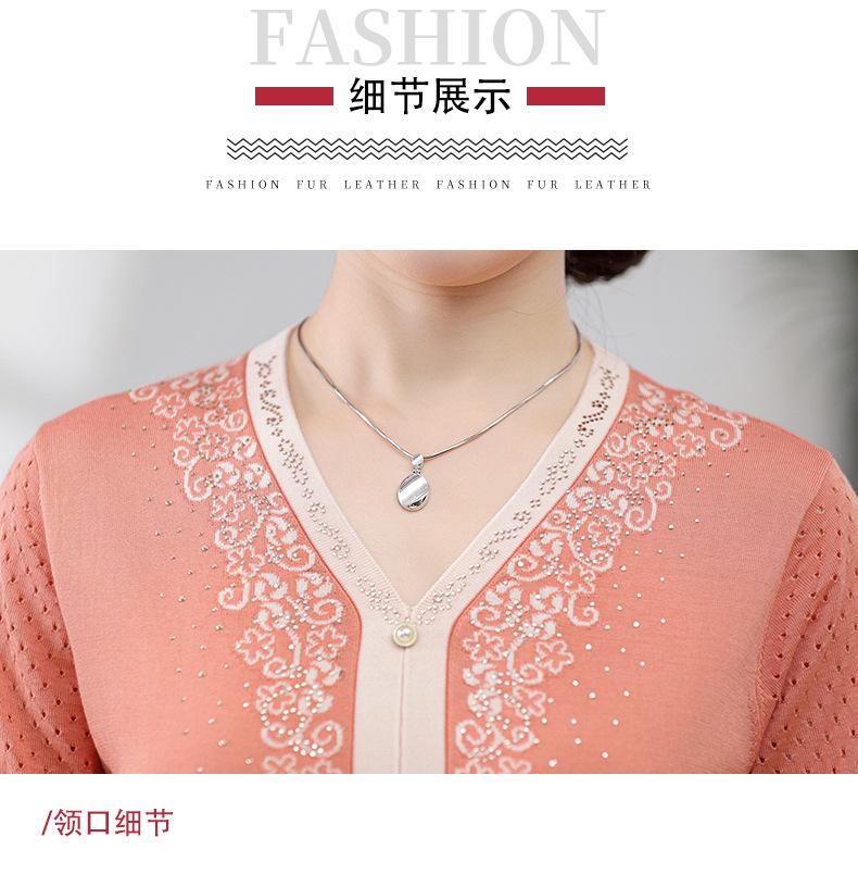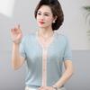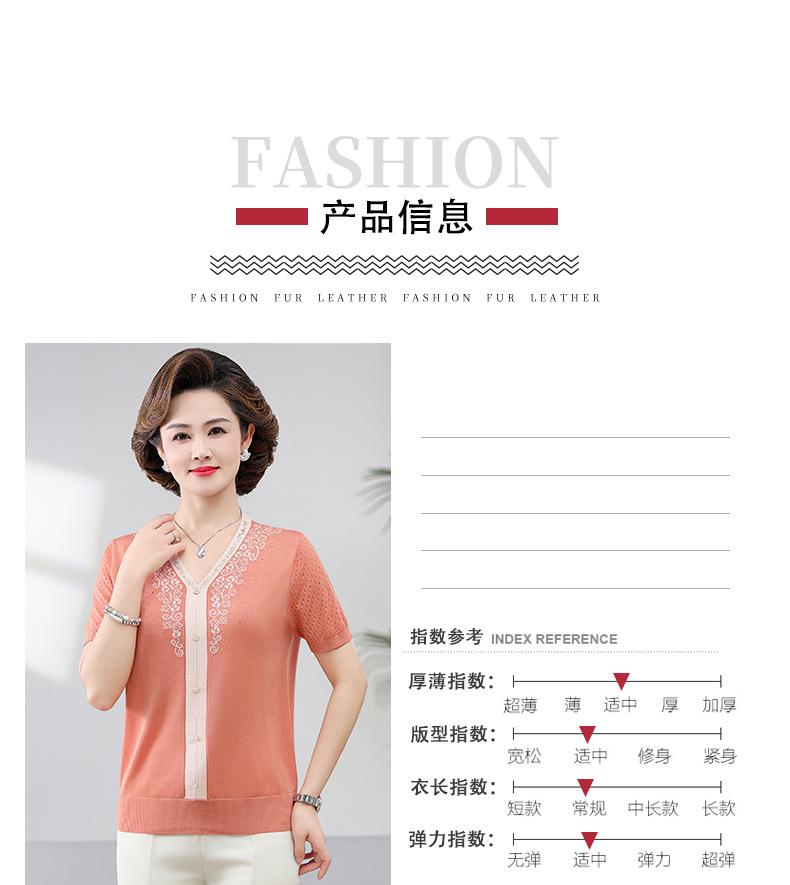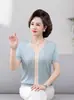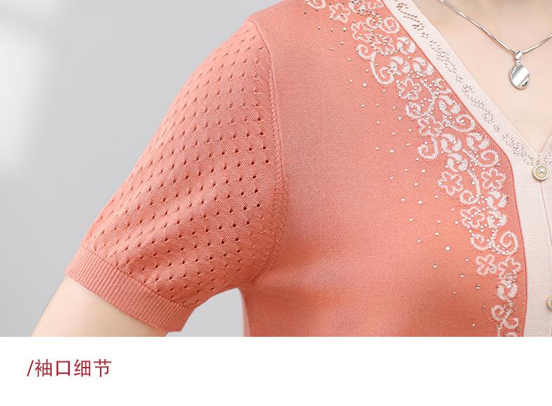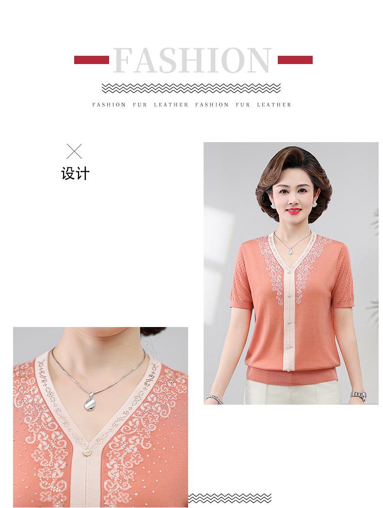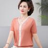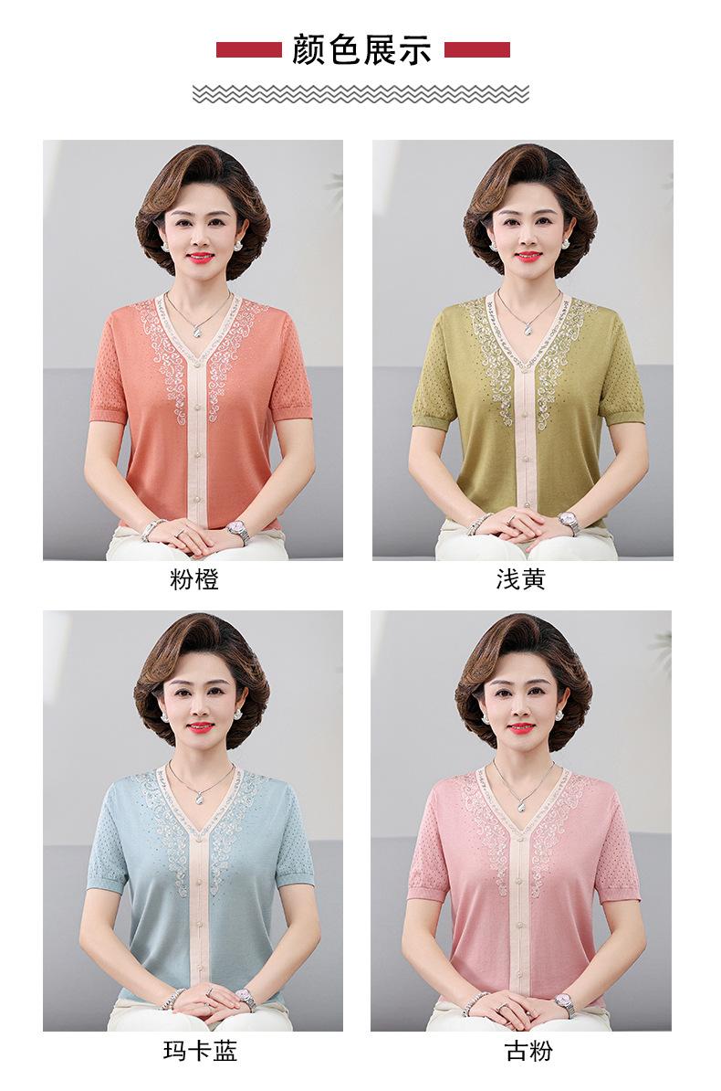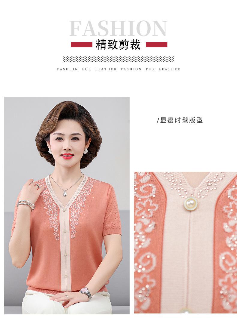 Suéter feminino de meia-idade e idosos, nova chegada de verão, elegante, decote em V, jacquard, manga curta, tamanho grande, blusa de lyocell para mãe