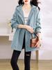 Casaco de Comprimento Médio de Cor Sólida para Mulheres, Novo Estilo Primavera 2025, Elegante, Fashionável, Simples e Generoso, Corta-vento com Capuz