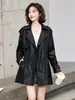 2025 Novo Estilo Outono Moda Gola Lapela Simples e Elegante Jaqueta de Couro PU Aparência Afinando a Cintura Comprimento Médio Corta-vento