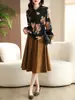 2025 Nova Roupa de Outono Estilo Coreano Camisa Estampada de Manga Comprida com Saia Elegante de Deusa Conjunto de Duas Peças