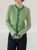 Suéter verde slim fit top feminino primavera e outono design vintage senso nicho chique cardigan de malha slim