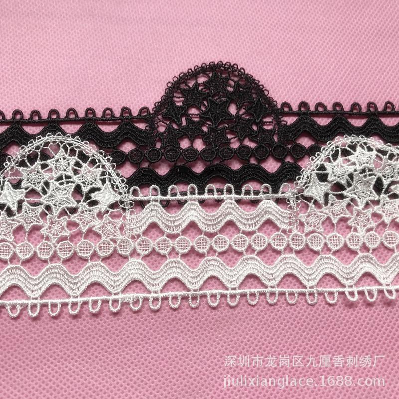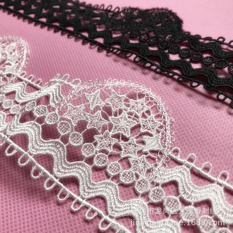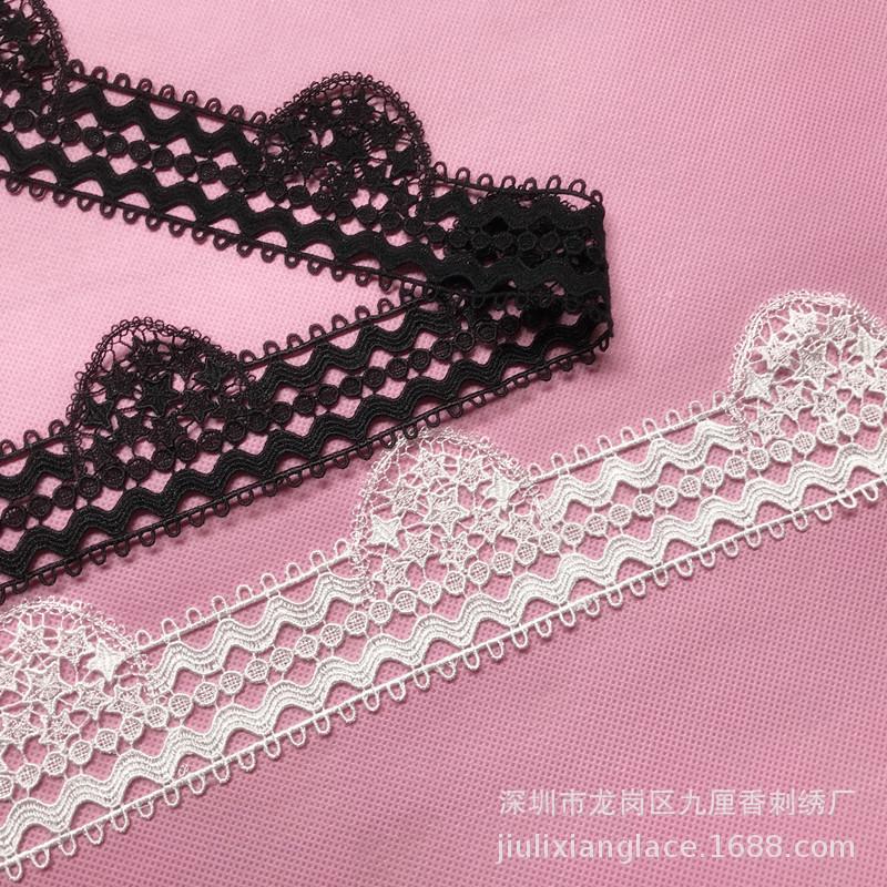 | Fornecimento direto da fábrica 21 cm de largura algodão bordado renda acessórios saia faça você mesmo cama cortina algodão renda | Fabricantes atacado saia de algodão canto renda algodão tira bordado tira flor largura 43cm acessórios de vestuário renda oca | Pano de algodão colorido bordado leite seda bordado completo acessórios de roupas largura 1,35 cm tridimensional solúvel em água renda pedaço flor | ||