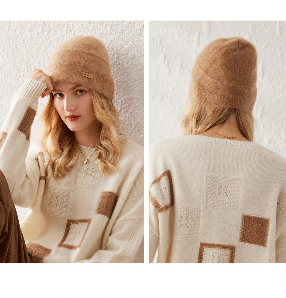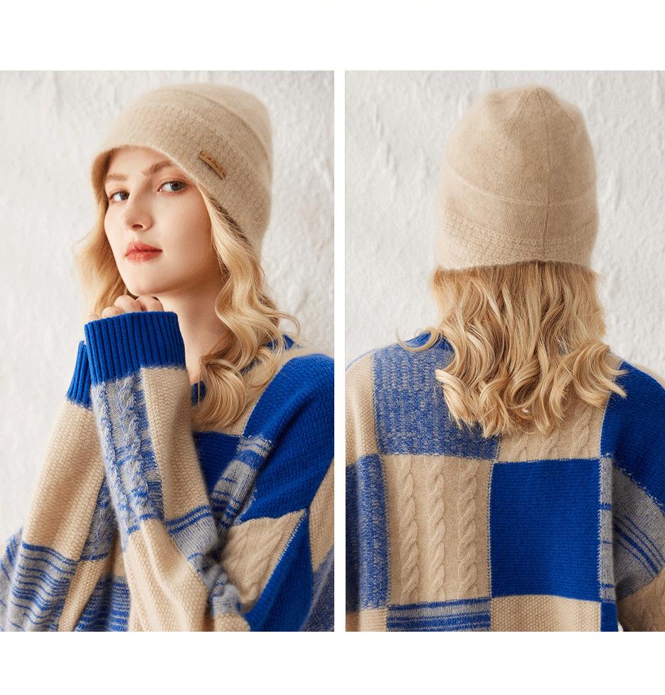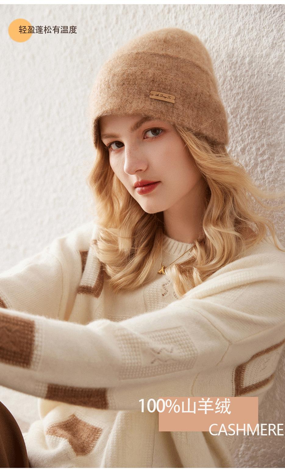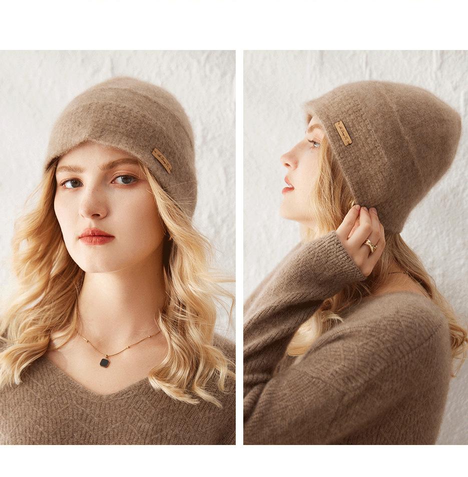 Chapéu de cashmere feminino 100% cashmere puro 2023 outono e inverno Novo chapéu de malha quente e moderno e torcido