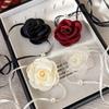 [Material] Renda preta requintada, tecido rosa requintado, pérolas pretas de alta imitação,