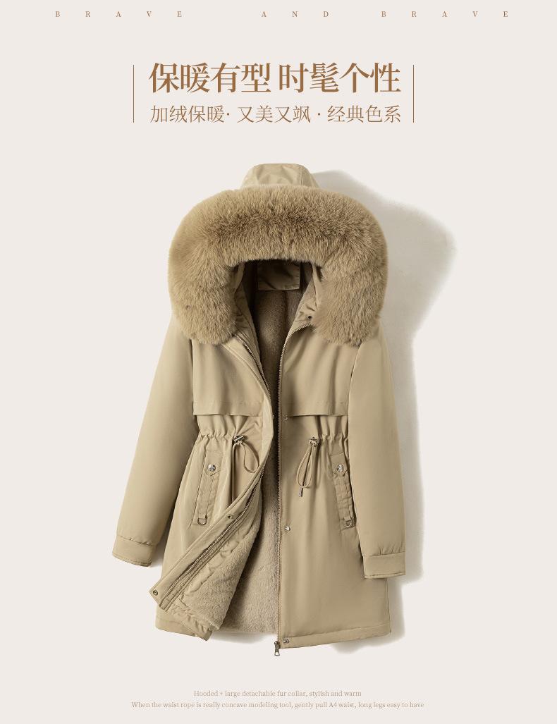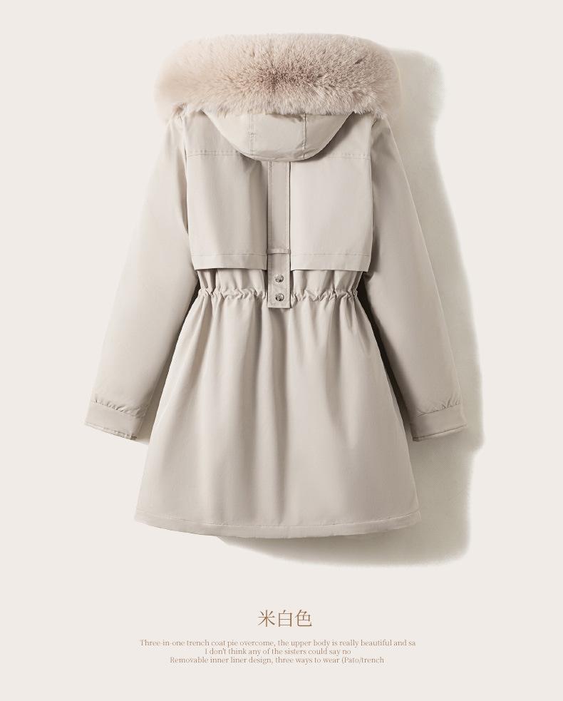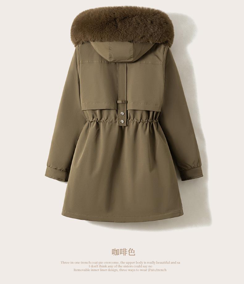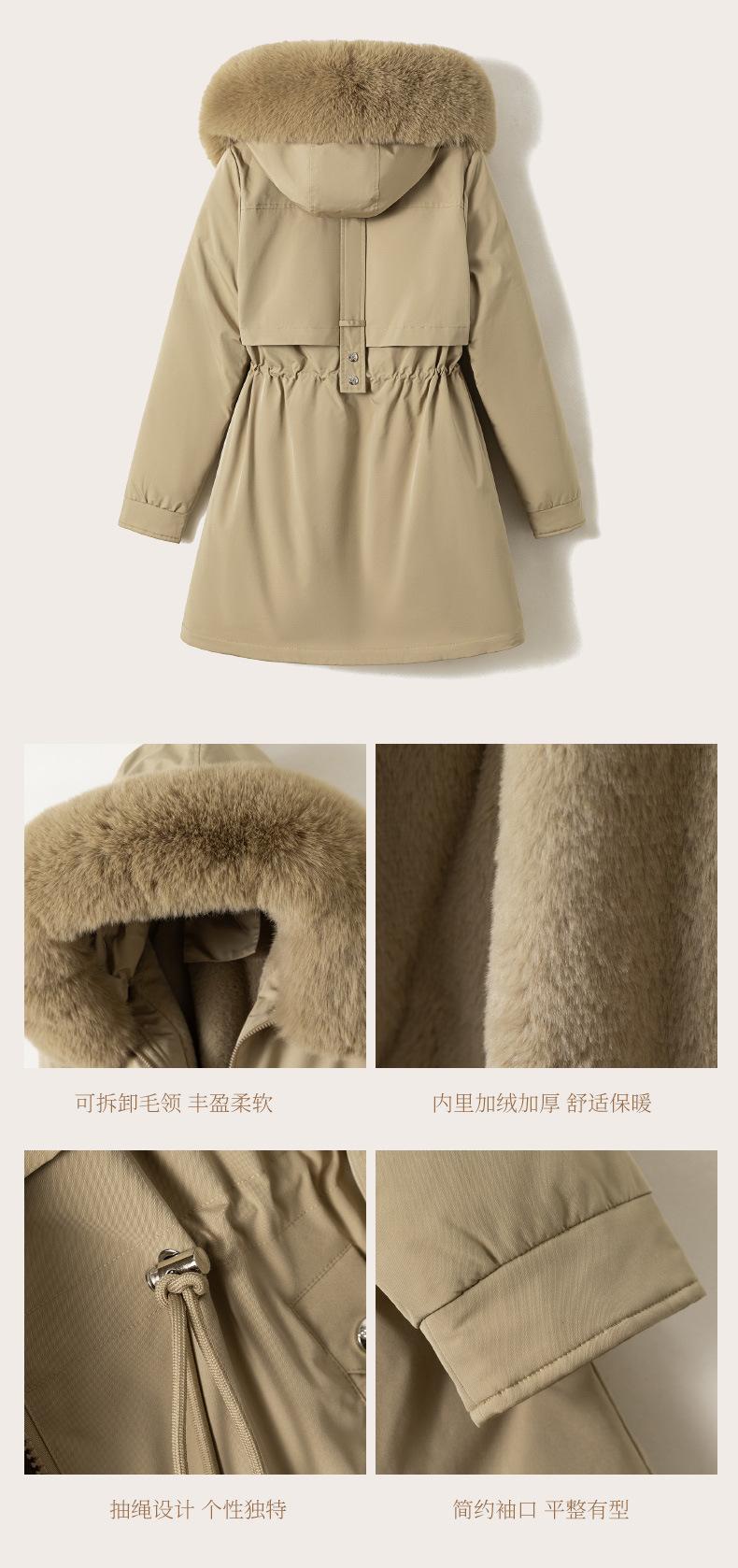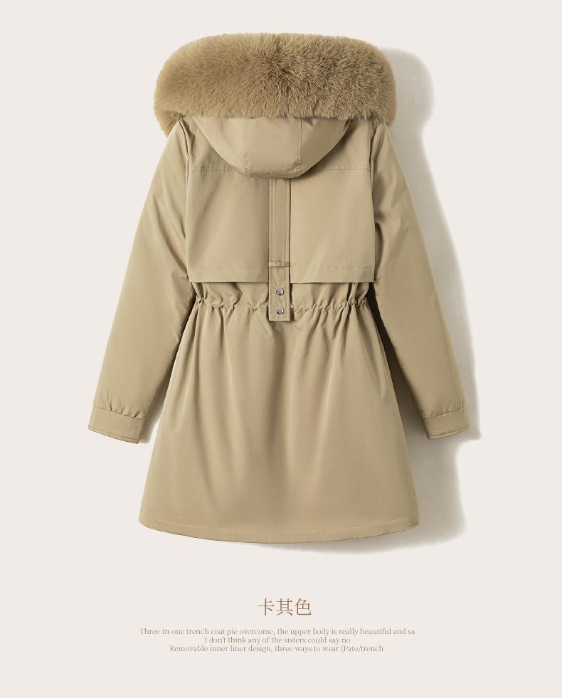 2024 Novo casaco de penas de gola de pele grande transfronteiriço feminino de cintura média ao ar livre