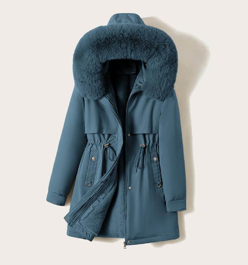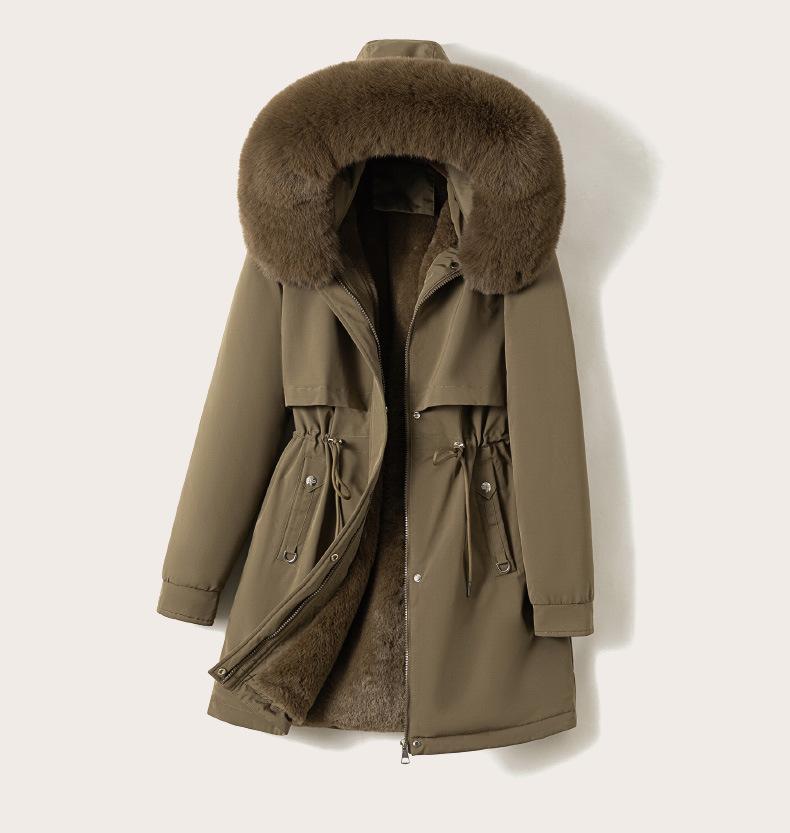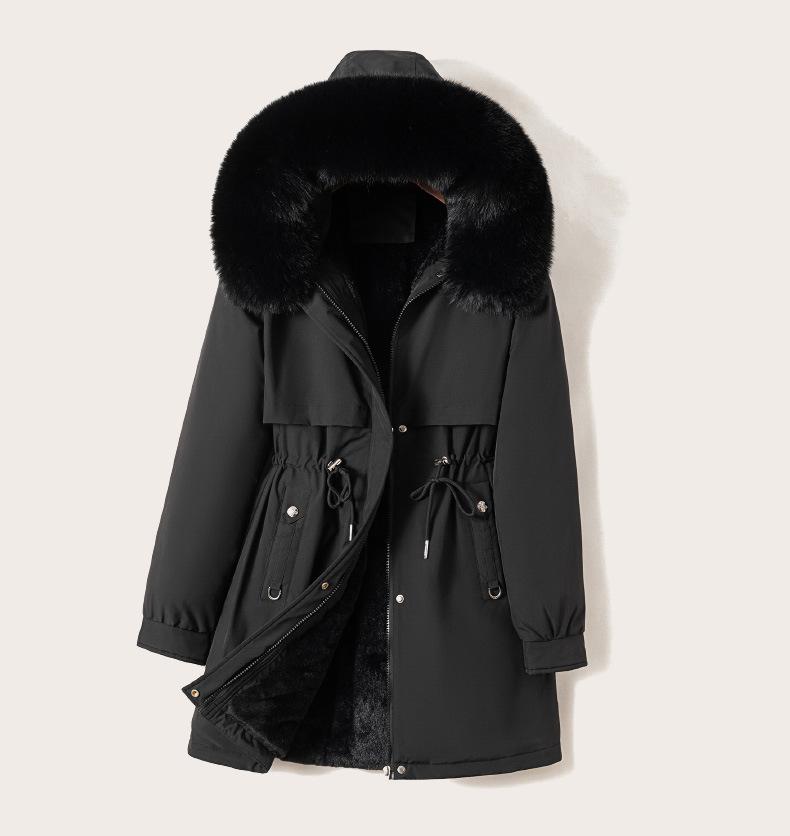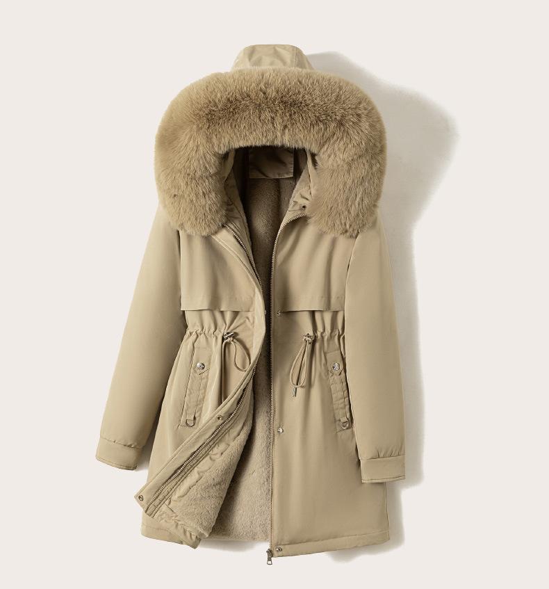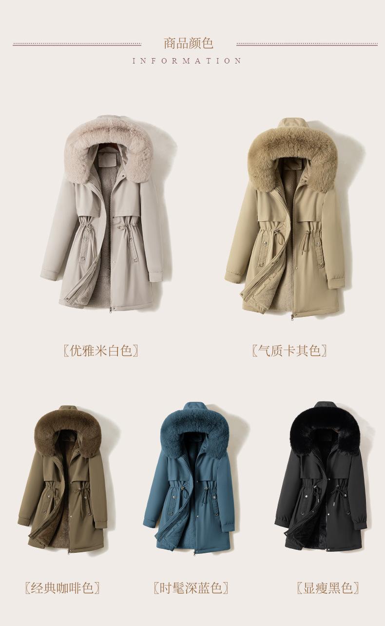 2024 Novo casaco de penas de gola de pele grande transfronteiriço feminino de cintura média ao ar livre
