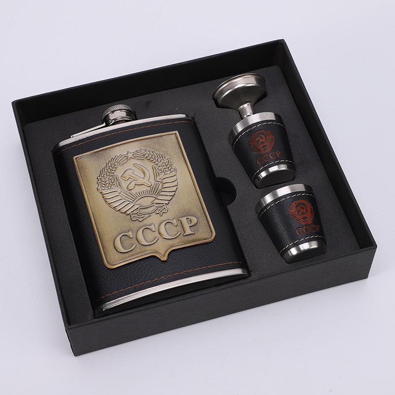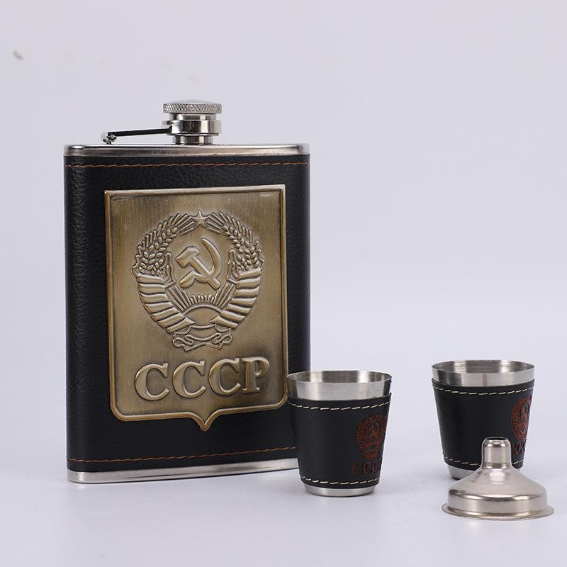 Remendo de prepúcio 8 oz conjunto de vinho terno pote de vinho de aço inoxidável ao ar livre russo portátil garrafa de vinho branco couro PU