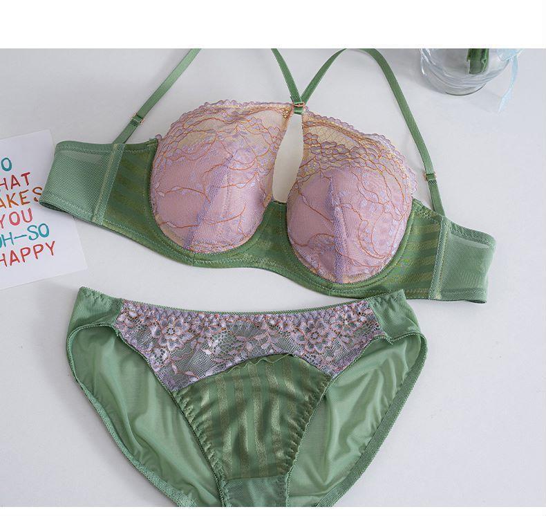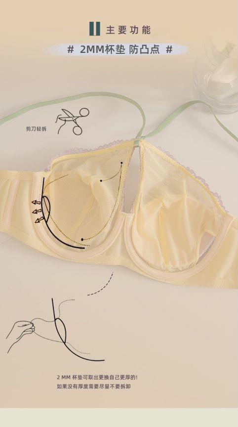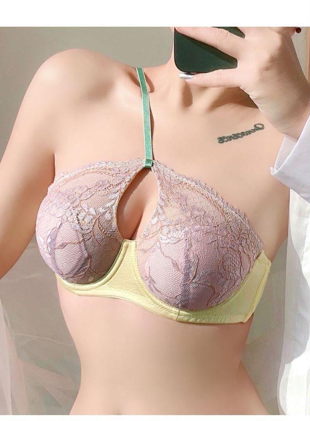 Roupa íntima ultrafina para pendurar no peito grande feminino Sutiã de seda pequeno Terno de verão Reunir belas costas copo cheio Anti-flacidez