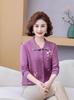 Meia-idade e idosa das mulheres soltas top lapela fina camisola mãe primavera novo estilo bordado casaco de malha cardigan