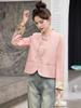 Primavera 2025 Novo Temperamento Moda Retrô Novo Estilo Chinês Botão Gola Alta Design Jacquard Jaqueta