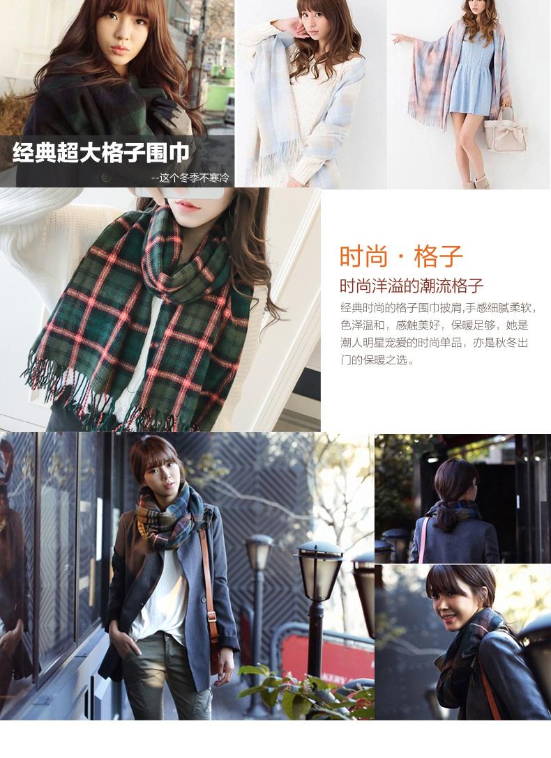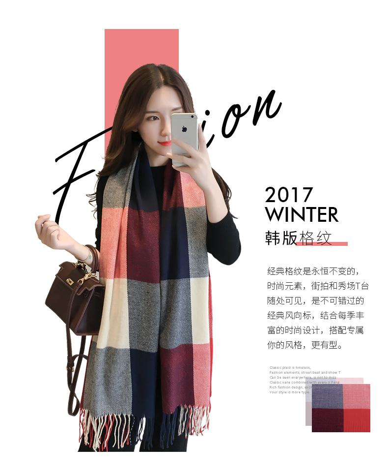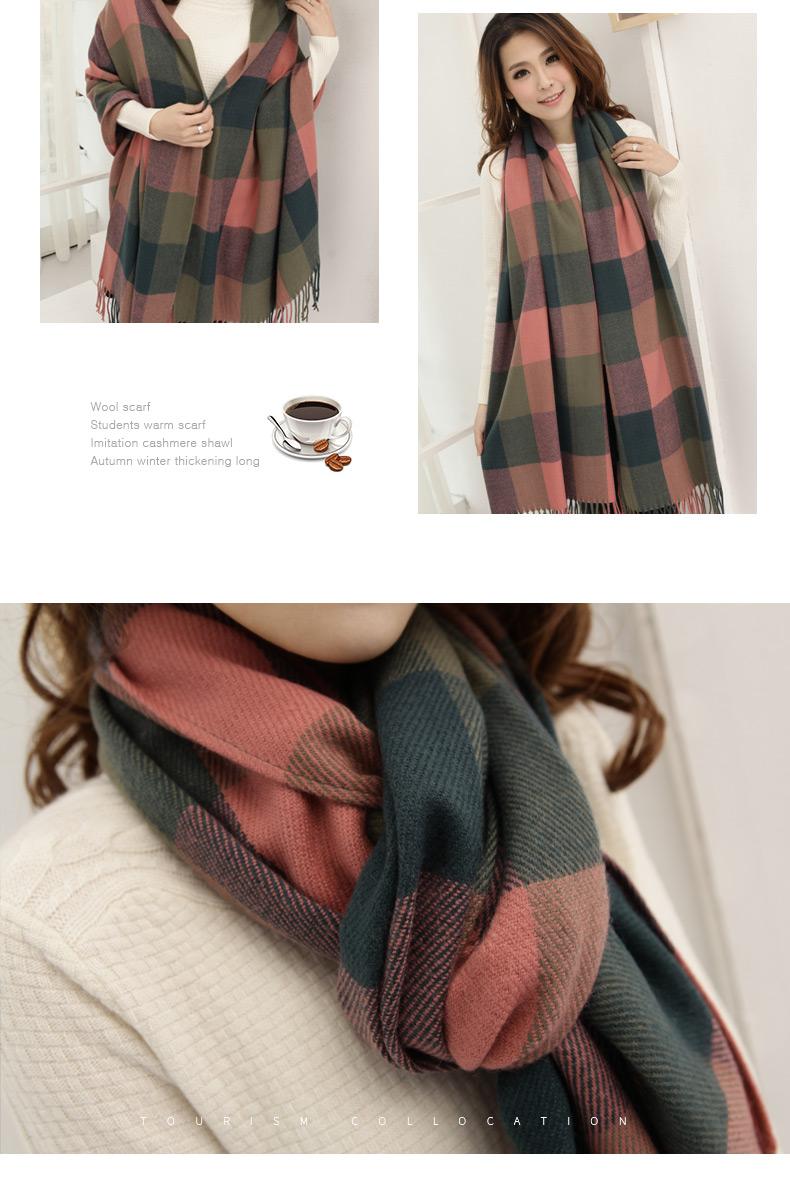 Cachecol Xadrez Estilo Coreano Outono e Inverno Imitação Caxemira para Homens e Mulheres, Xale Longo Espesso, Cachecol/Xale Quente Estudantil Dupla Face