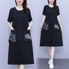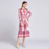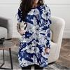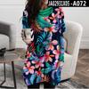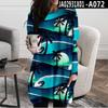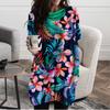 Camiseta de bolso longo de primavera e outono europeia e americana transfronteiriça, tamanho grande, vestido feminino com elementos havaianos e gola redonda