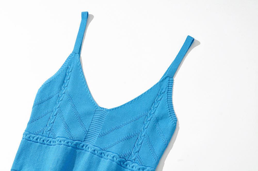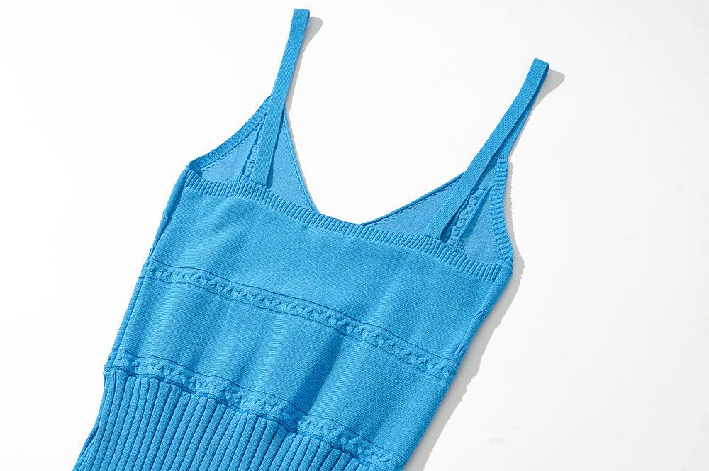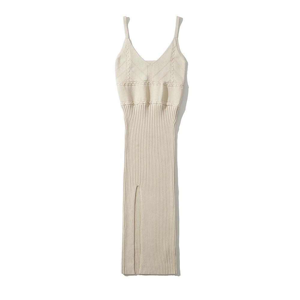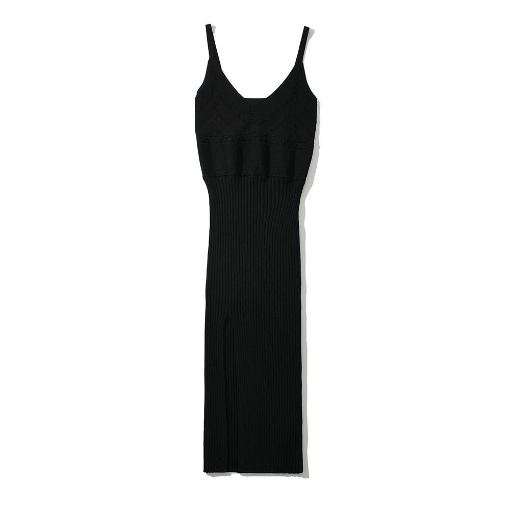 2023 estilo europeu e americano nova cor sólida cintura fenda lateral vestido de alça profundo com decote em v saia de quadril
