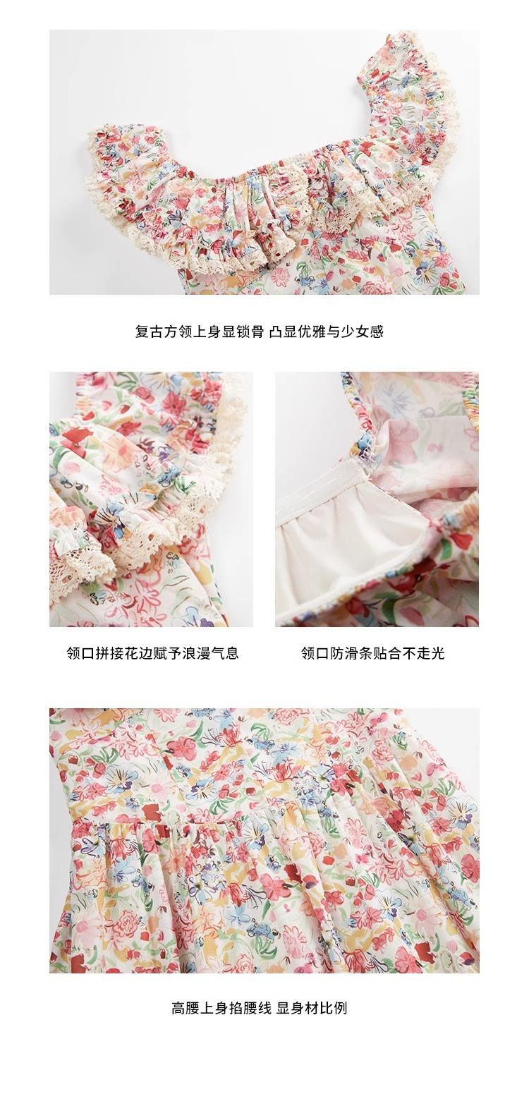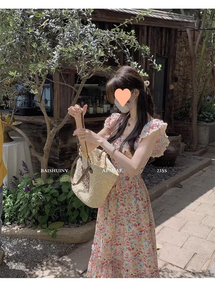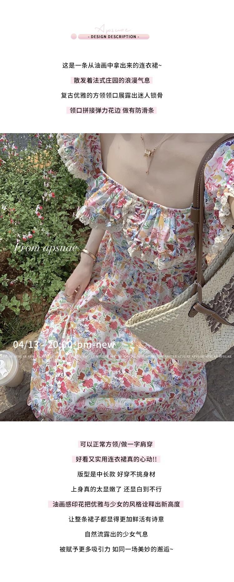 Compre Vestido Floral de Gola Quadrada para Mulheres Slim-fit Emagrecimento Longo Vestido Casual de Férias à Beira-Mar no atacado no Joom.pro