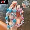 Chaveiro de laço frisado Corrente de telefone móvel Estudante Mochila Pingente Alça de pulso portátil Corrente de telefone móvel Presente pequeno