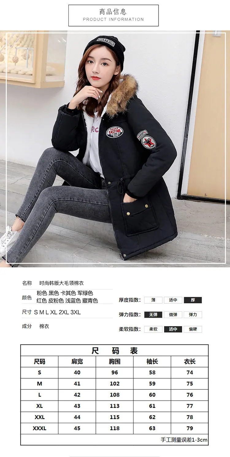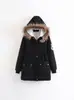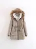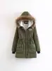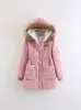 2025 Outono/Inverno Novo Estilo Coreano Moda Gola Grande de Pele Casaco de Algodão de Comprimento Médio com Capuz Espesso e Cintura Ajustável Jaqueta Feminina