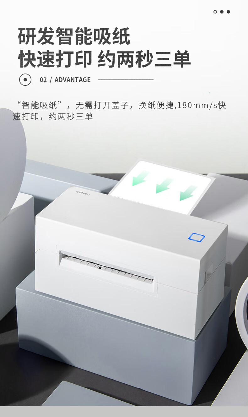Deli DL-760D Impressora de etiquetas térmicas Superfície expressa Impressão única Impressora de código de barras de papel térmico de alta velocidade
