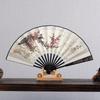 Características do produto: Os padrões do leque são principalmente cenas históricas clássicas, que são impressas e não desbotam; as nervuras do leque são feitas de nervuras de bambu, e as nervuras verdes superiores do leque são feitas de material de superfície de bambu com altíssima flexibilidade, de modo a obter um efeito mais durável; a superfície do leque é feita de seda, que tem forte resistência ao vento e não é fácil de ser danificada.