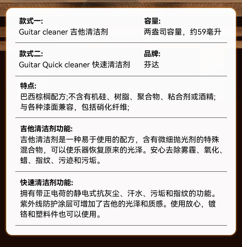 Piano body quick cleaner + gift, Fingerboard care solution + gift, Guitar cleaner + gift, Guitar polish + gift