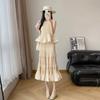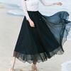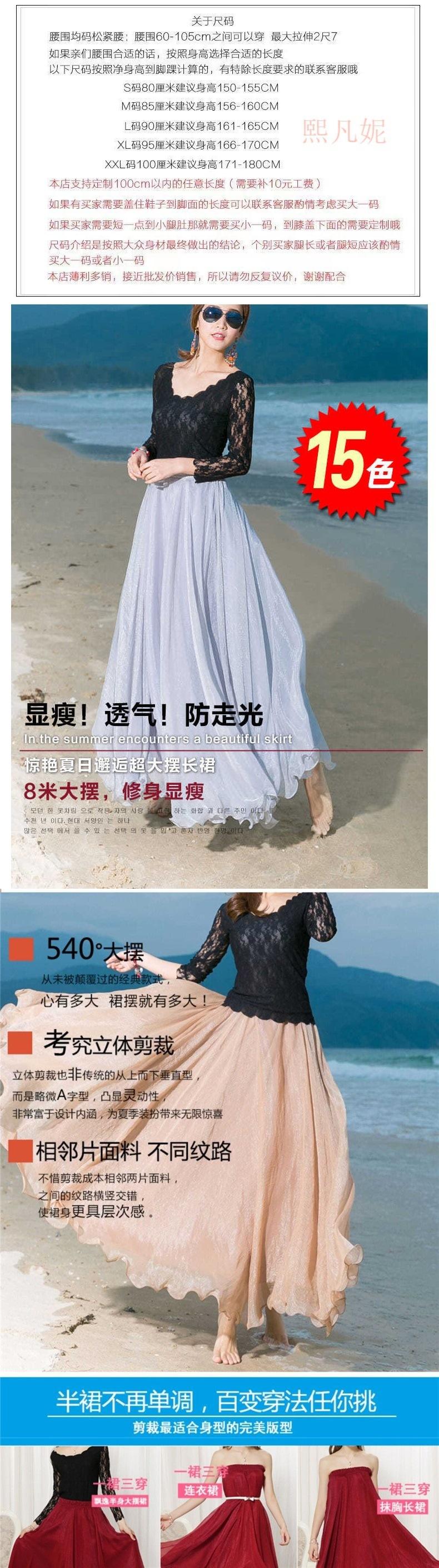 Saia Longa de Dança Boêmia Saia de Praia Fada Balanço Grande de 720 Graus 8m Cor Sólida Cintura Alta Chiffon de Seda Dourada
