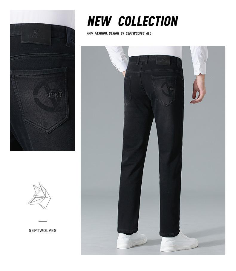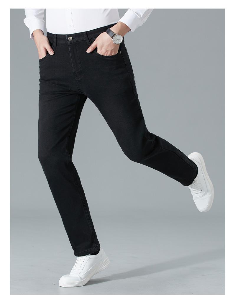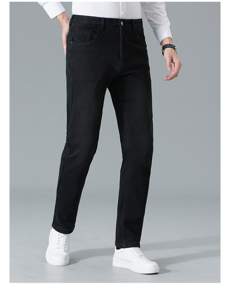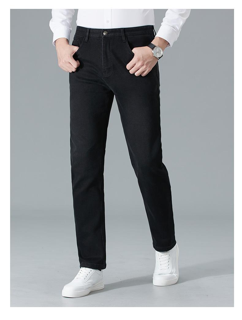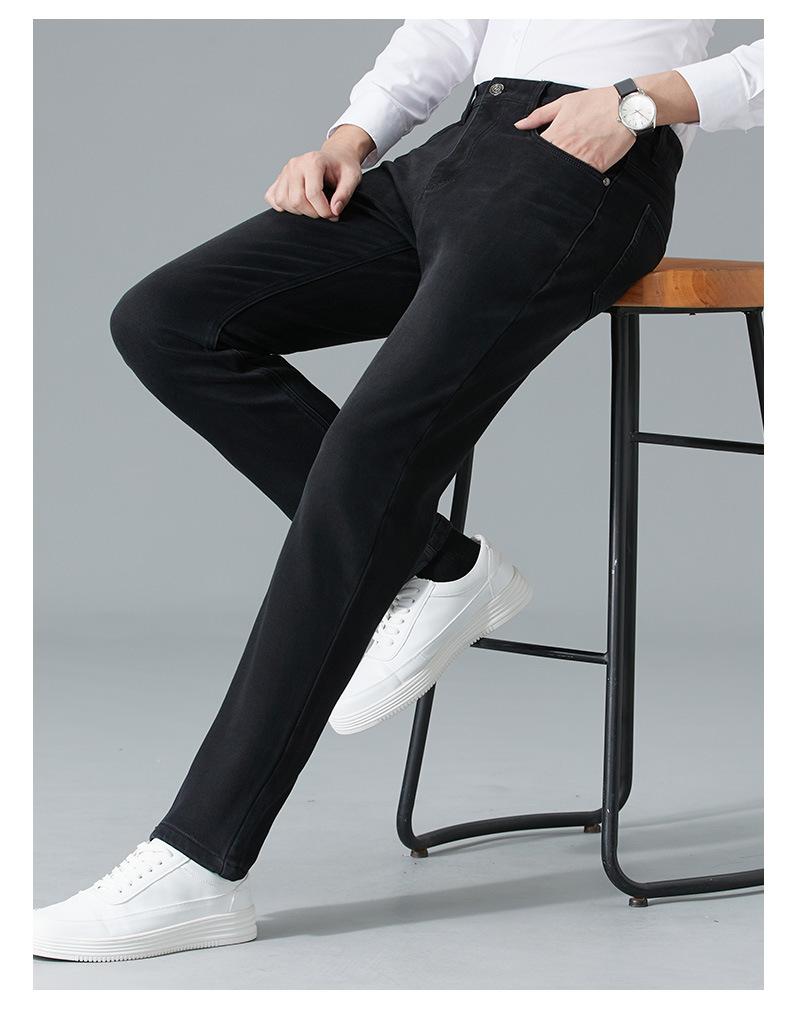 Casual Outono e Inverno Stretch Masculino de Meia-Idade e Jovem Calças Grossas Calças Pequenas Retas Slim-fit Jeans Masculinos de Negócios Calças Masculinas