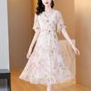 Verão 2025 Novo Retrô Francês Cintura Emagrecimento Look Babados Assimétrico Elegante Vestido de Manga Curta Saia Feminina