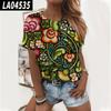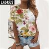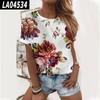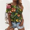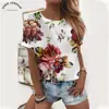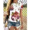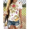 Nova Amazon Comércio Transfronteiriço Manga Curta Verão Feminino Flor Impressão Digital Impressão Em Torno Do Pescoço Camiseta
