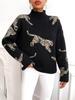 Europeu e Americano Cross-border Outono e Inverno Cervo Pelúcia Meia-gola Tartaruga Suéter Feminino Novo Elegante Jacquard Contraste Knit Top
