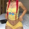 2024 Nova Carta de Verão Estampa de Cereja Slim-Fit Sexy Bow Camisola Feminina Cortada