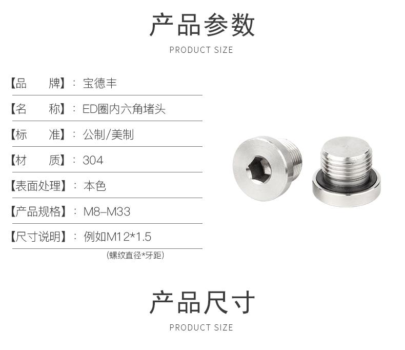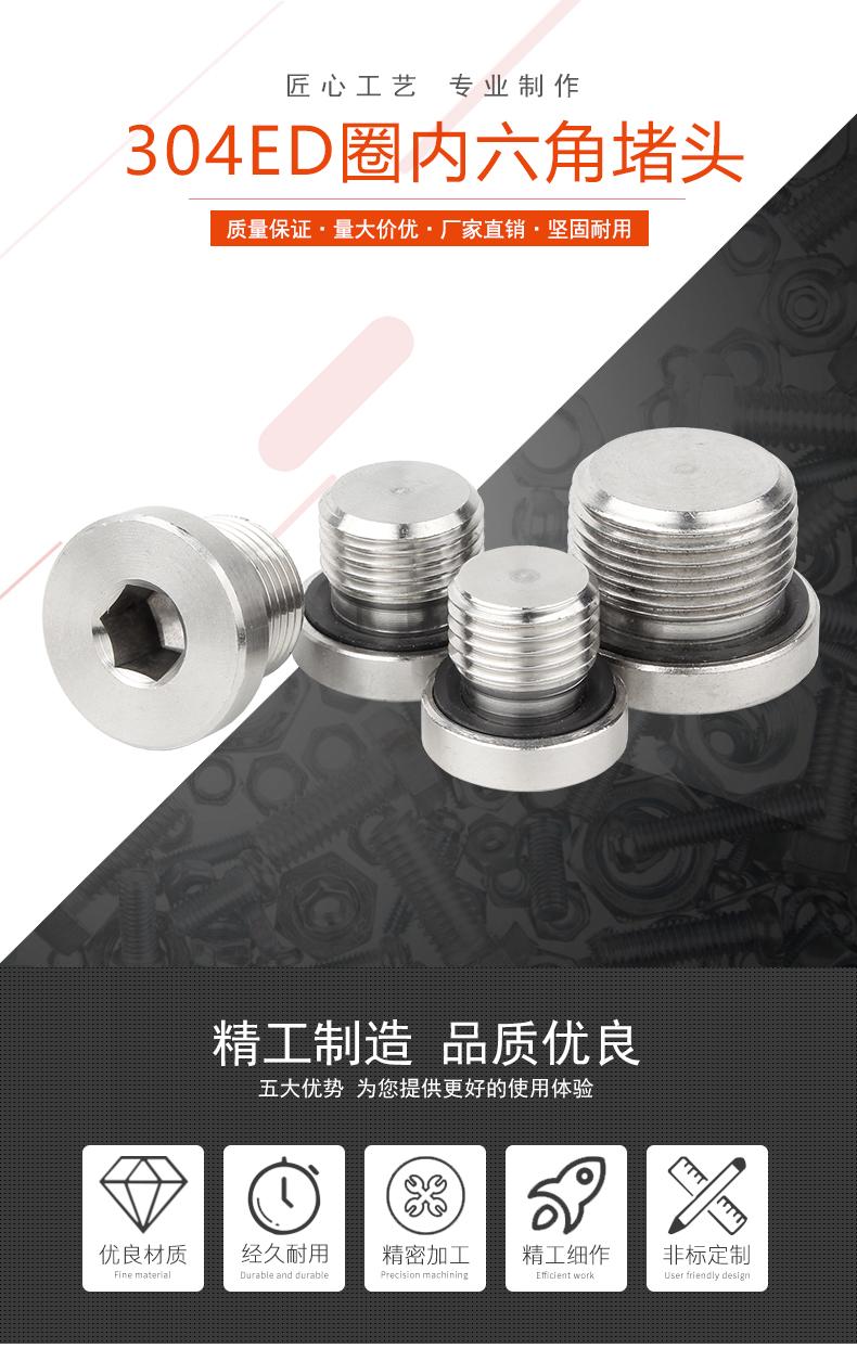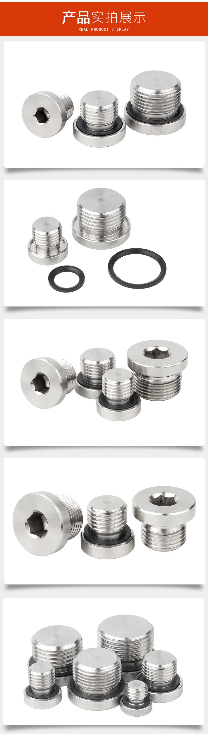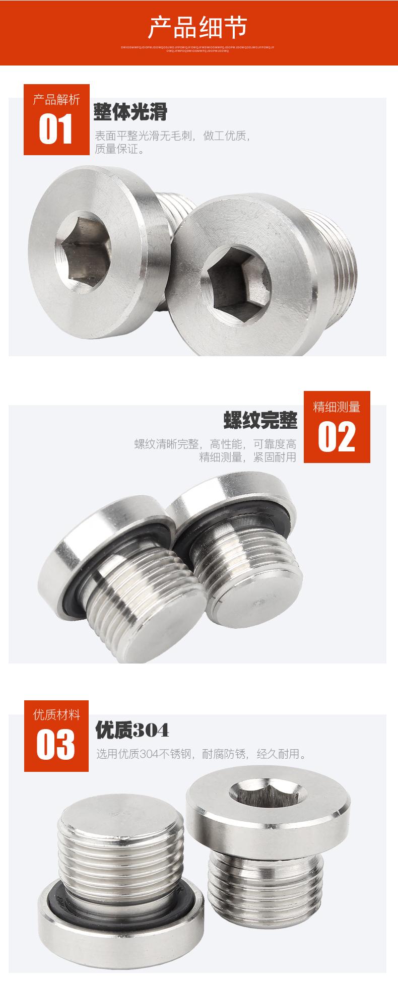 304 aço inoxidável hexágono soquete ED anel plugue de vedação com flange borda plugue de óleo polegada plugue de parafuso G1 / 234 pontos