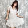 Cherry Temptation Lingerie Camisola Feminina de Renda com Laço Pendurado Sem Costas Sexy Perspectiva Pijama