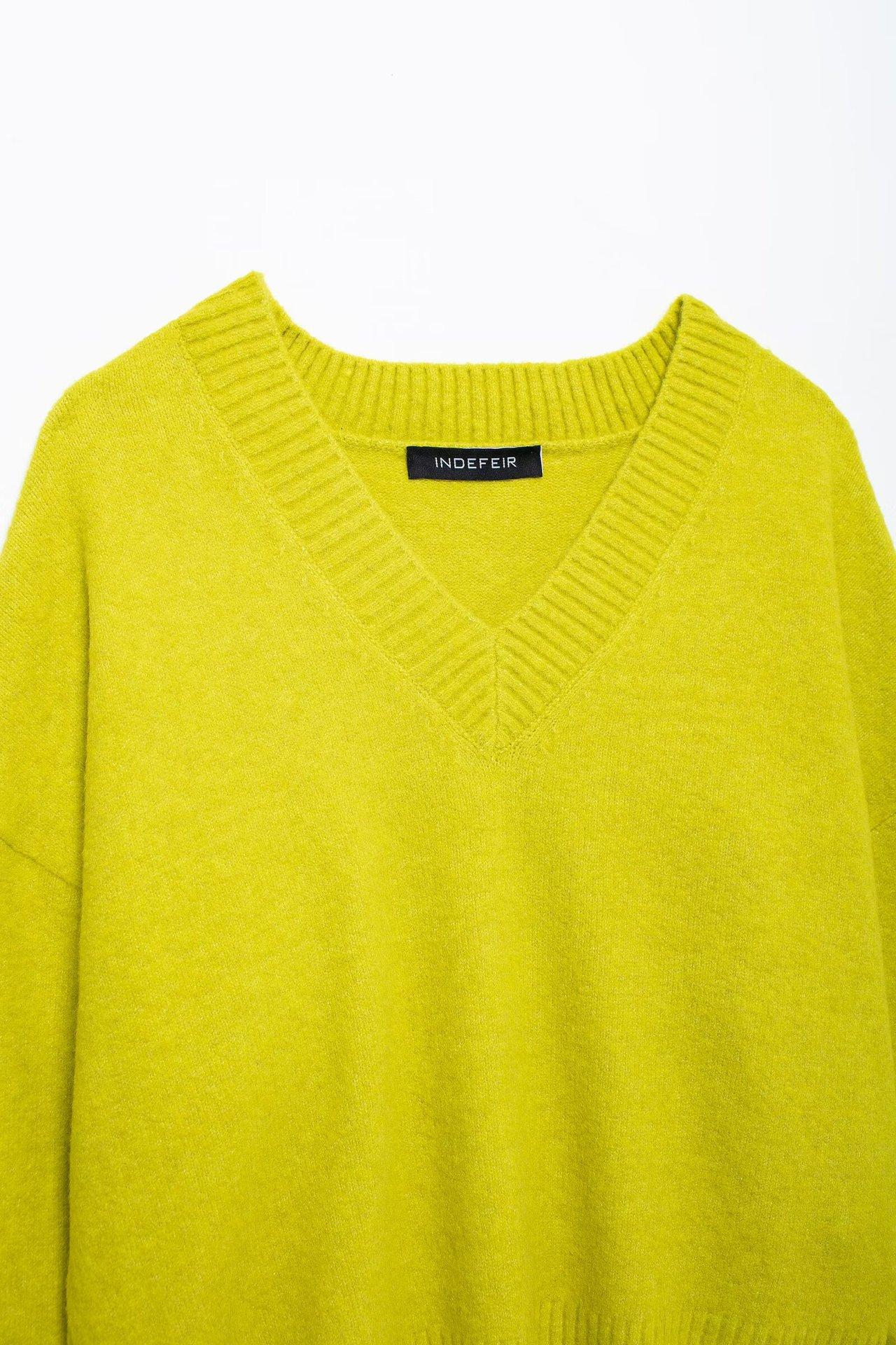 Bzl Estilo Europeu e Americano Outono Tricô Tops para Mulheres 5 Roupas Femininas Novas 34 Manga Comprida Solto Decote V 150 Cor Poliéster