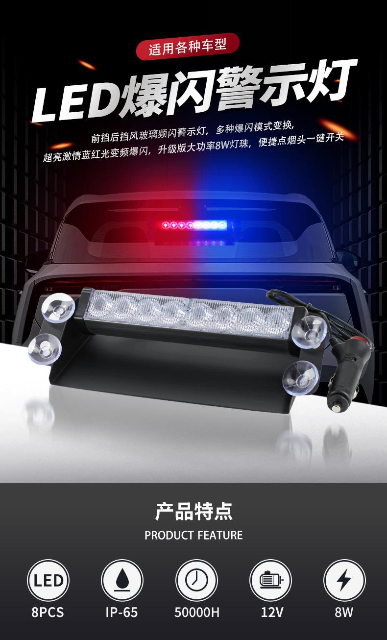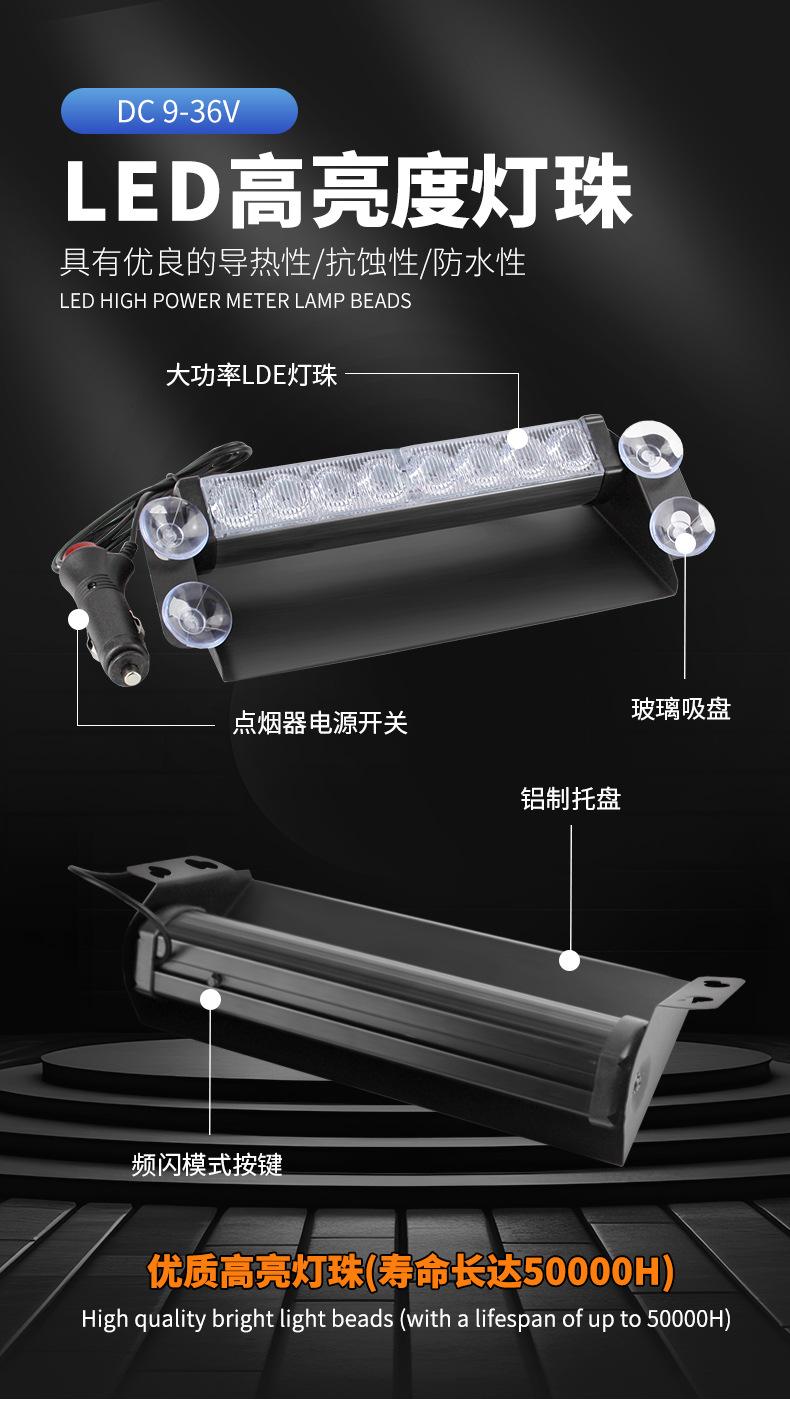 Luz de pá de carro 8LED ventosa flash luz de abertura do pára-brisa dianteiro luz estroboscópica do carro 12V