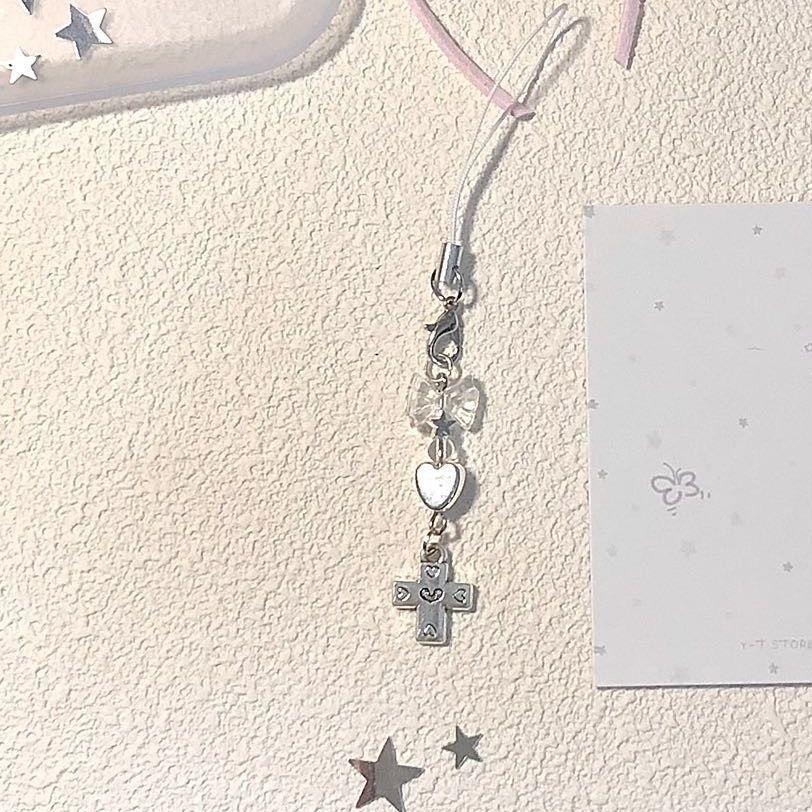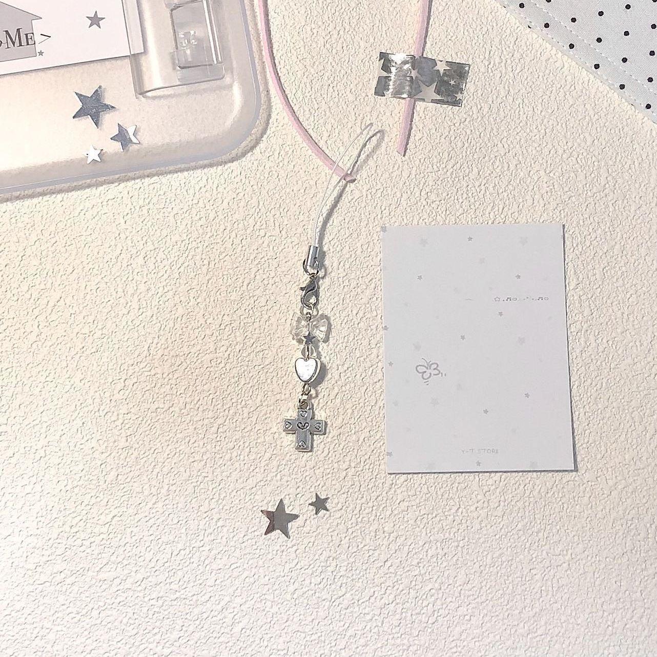 [Cheio de cruz de coração] feito à mão com contas coração de menina caseiro simples ins corrente de telefone móvel bonito goo este pingente ccd