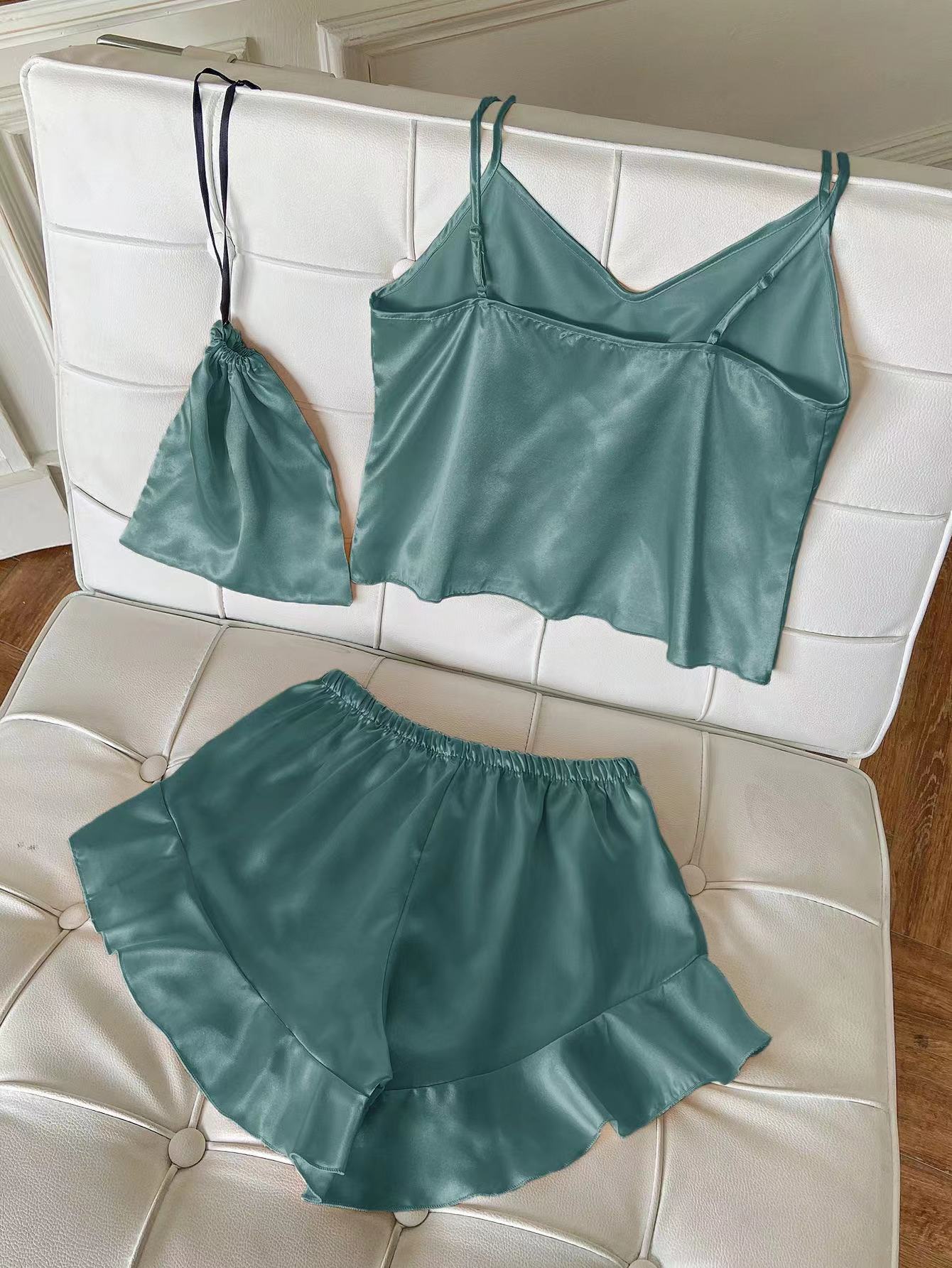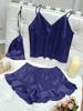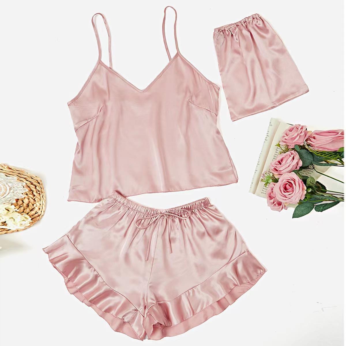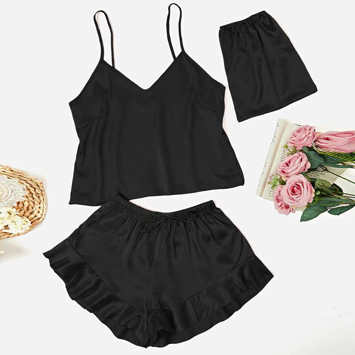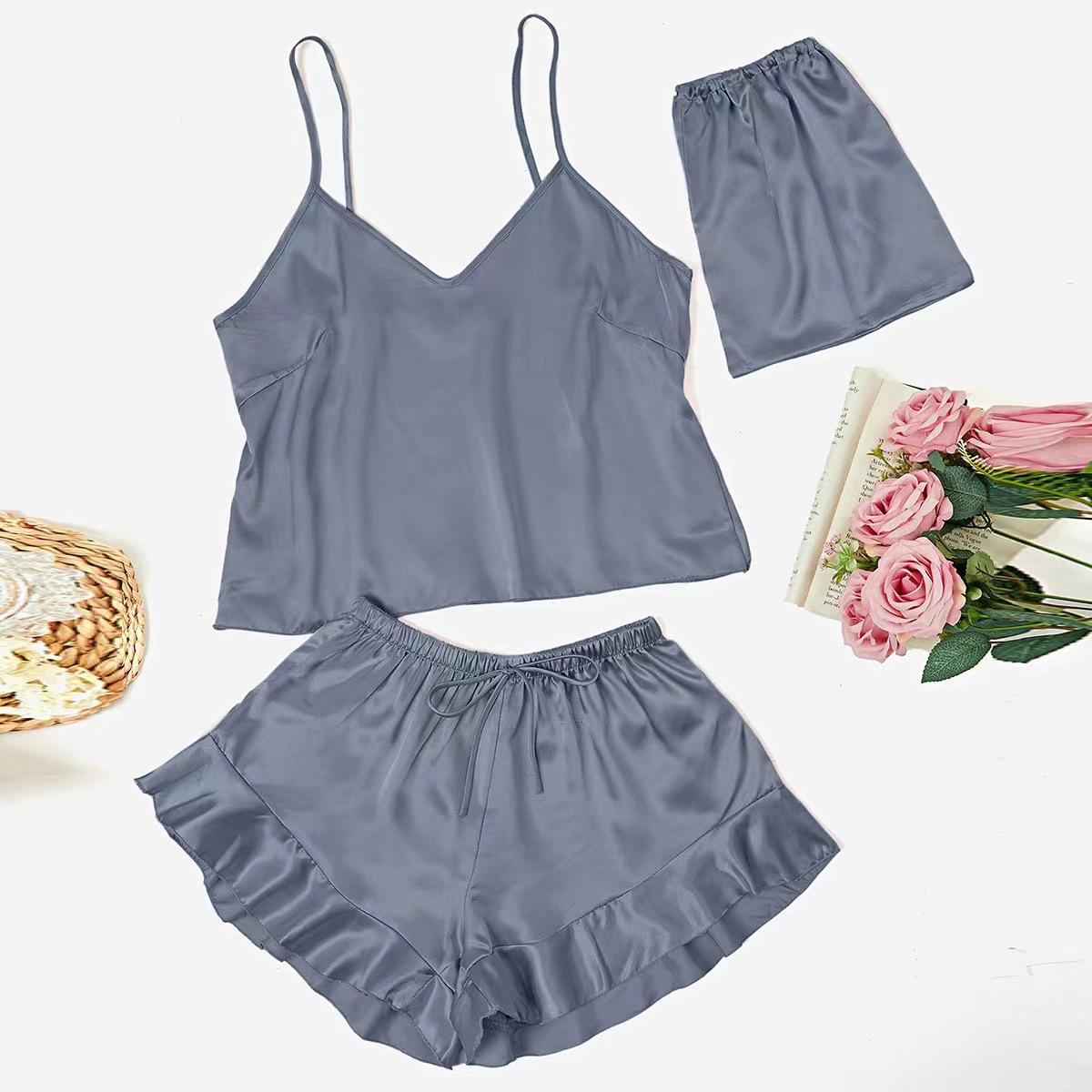 Comércio Exterior Novo Verão Feminino Sexy Pijama de Alças, Fresco, Confortável e Solto Roupa de Casa Conjunto Cor Pura Europeu e Americano