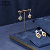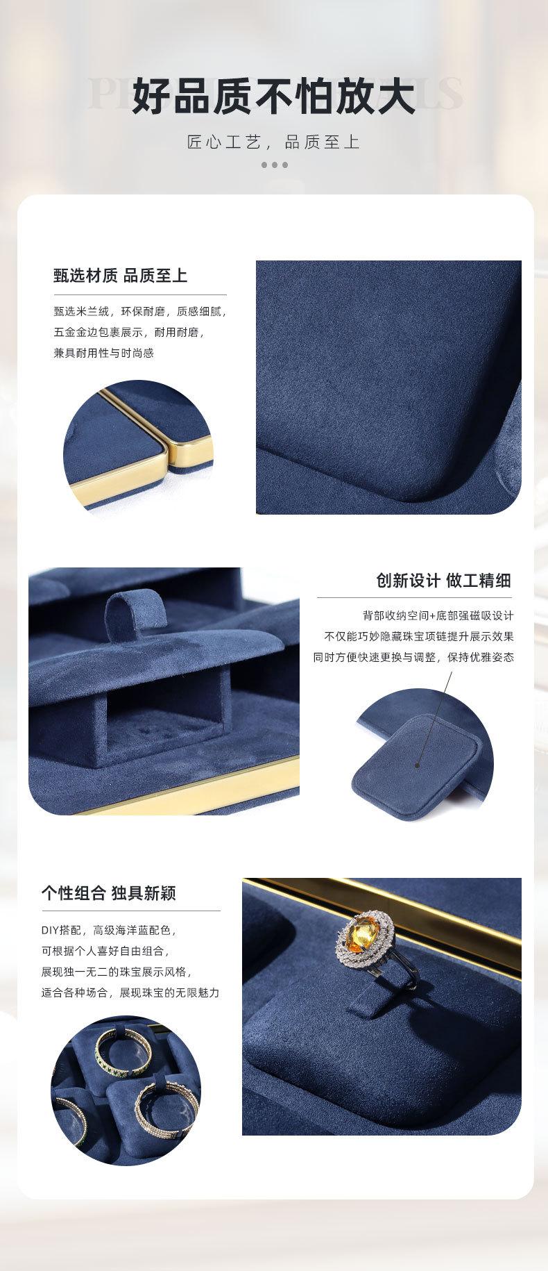 Flanela azul pequeno faça você mesmo adereços de exibição anel pulseira jóias expositor rack alto sentido contador adereços de exibição