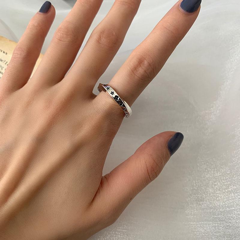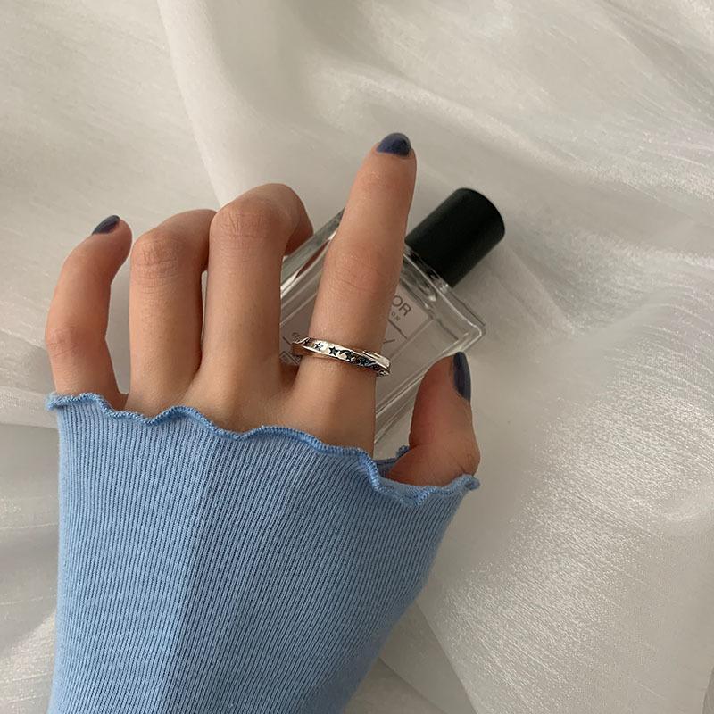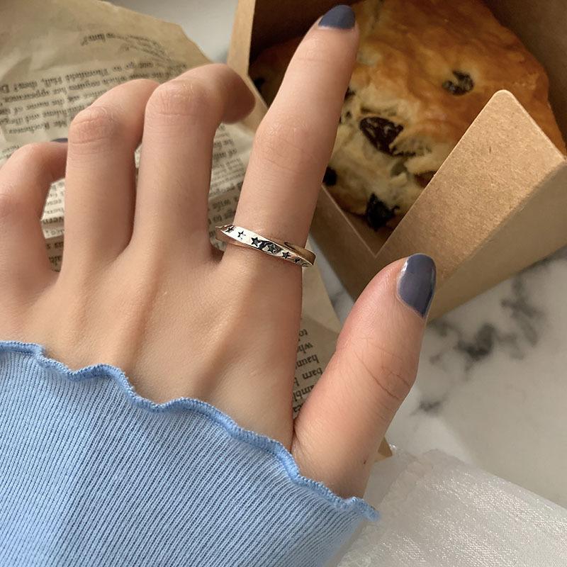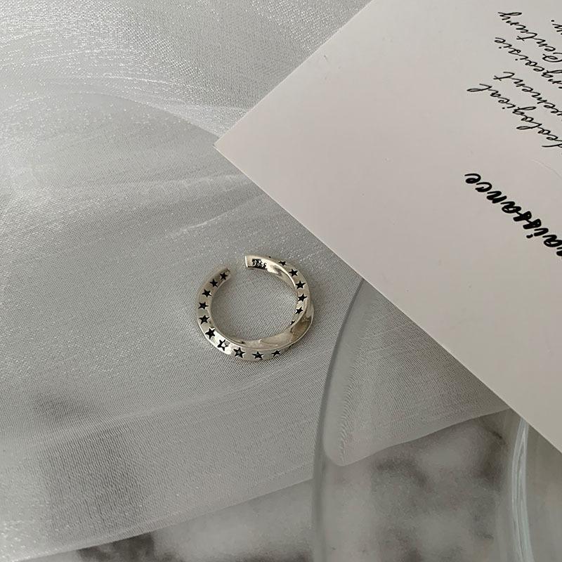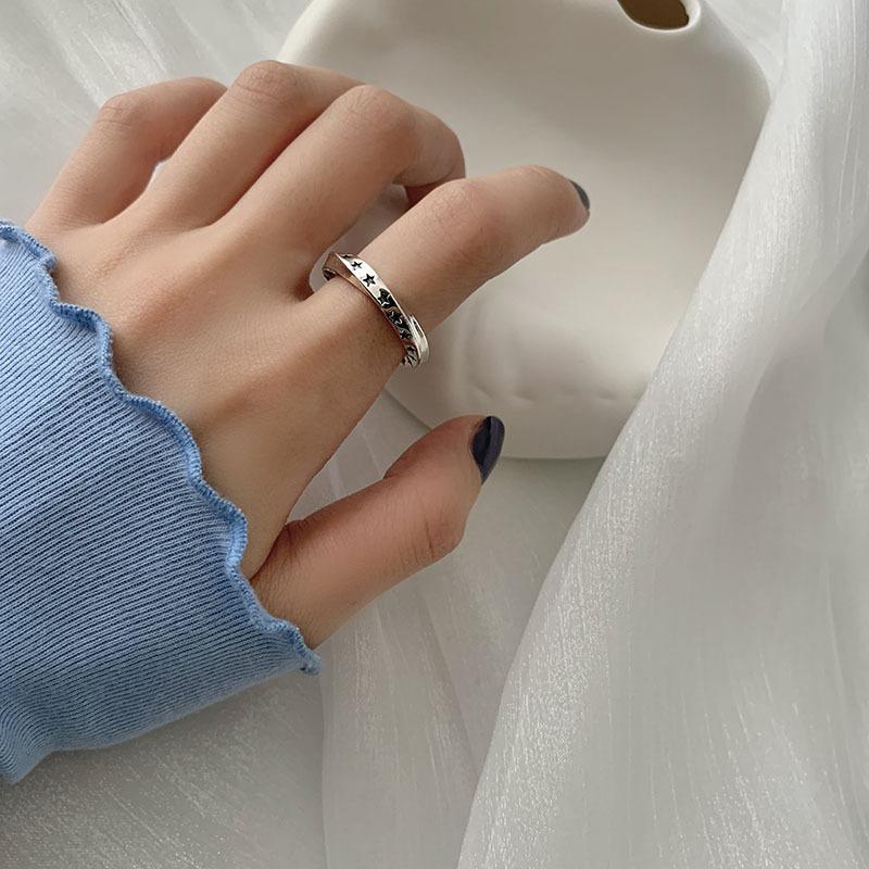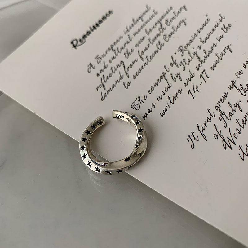Anel de estrela de cinco pontas estilo japonês e coreano Mobius Kink, moda retrô feminina, anel aberto de estrela em todo o céu, personalidade hip-hop
