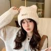 Chapéu de pelúcia fofo estilo coreano com orelha de urso, chapéu feminino de outono e inverno, proteção para orelhas à prova de frio, biqueira com biqueira que mostra o rosto pequeno