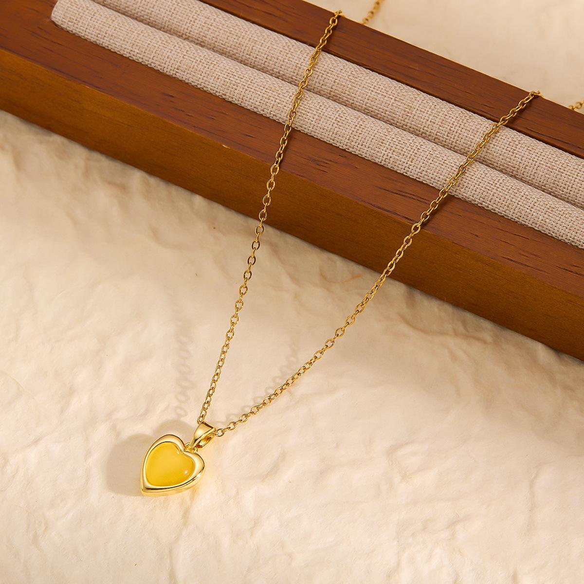 Compre Colar de ágata de pedra natural de imitação de estilo coreano em forma de coração, pingente de coração de pêssego, colar feminino de verão de alta qualidade, simples no atacado no Joom.pro