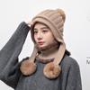 Gorro de lã de inverno com bola de cabelo quente e grosso feminino, gorro de malha para áreas externas, moda, chapéu de lã para todos os gostos