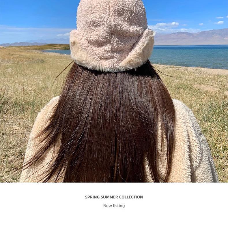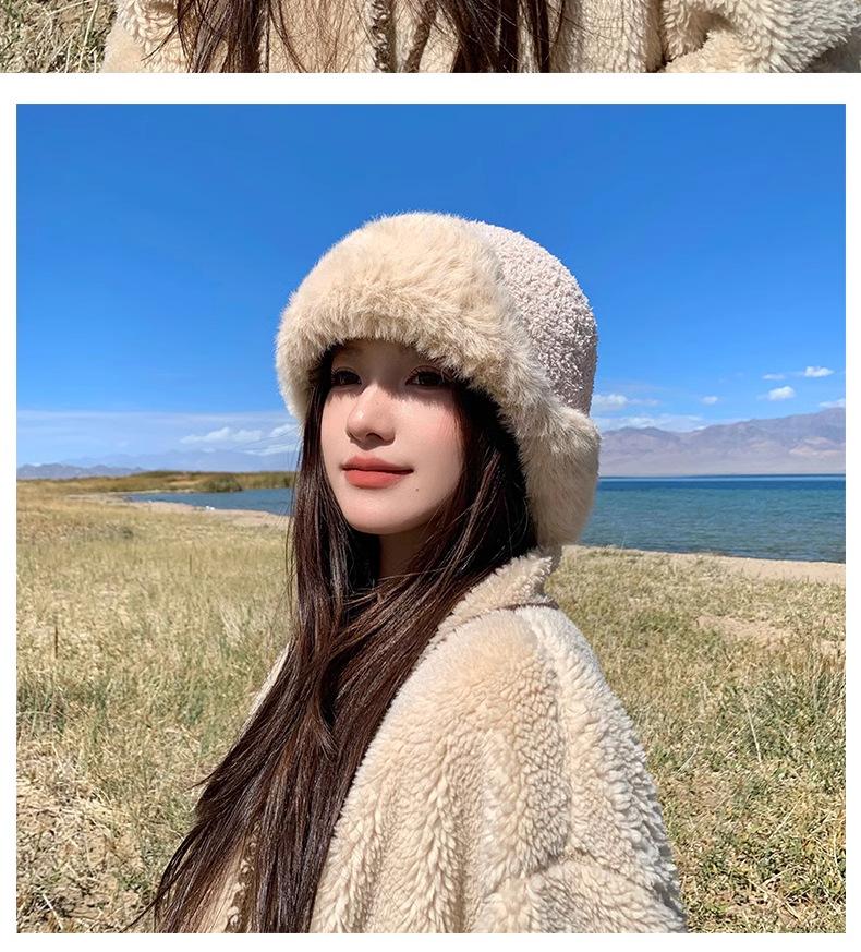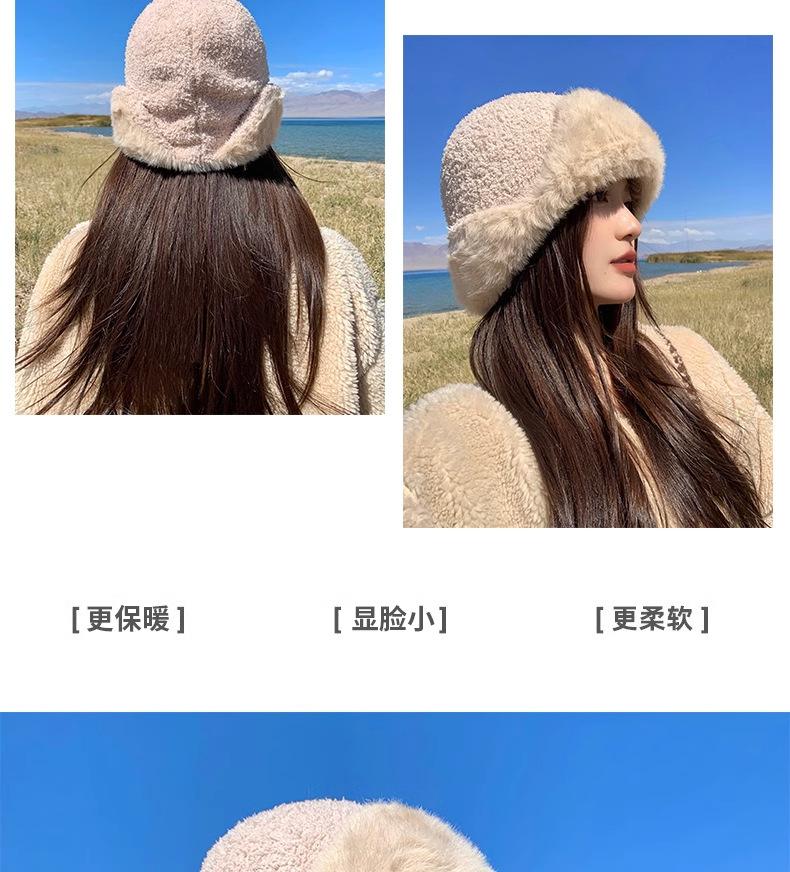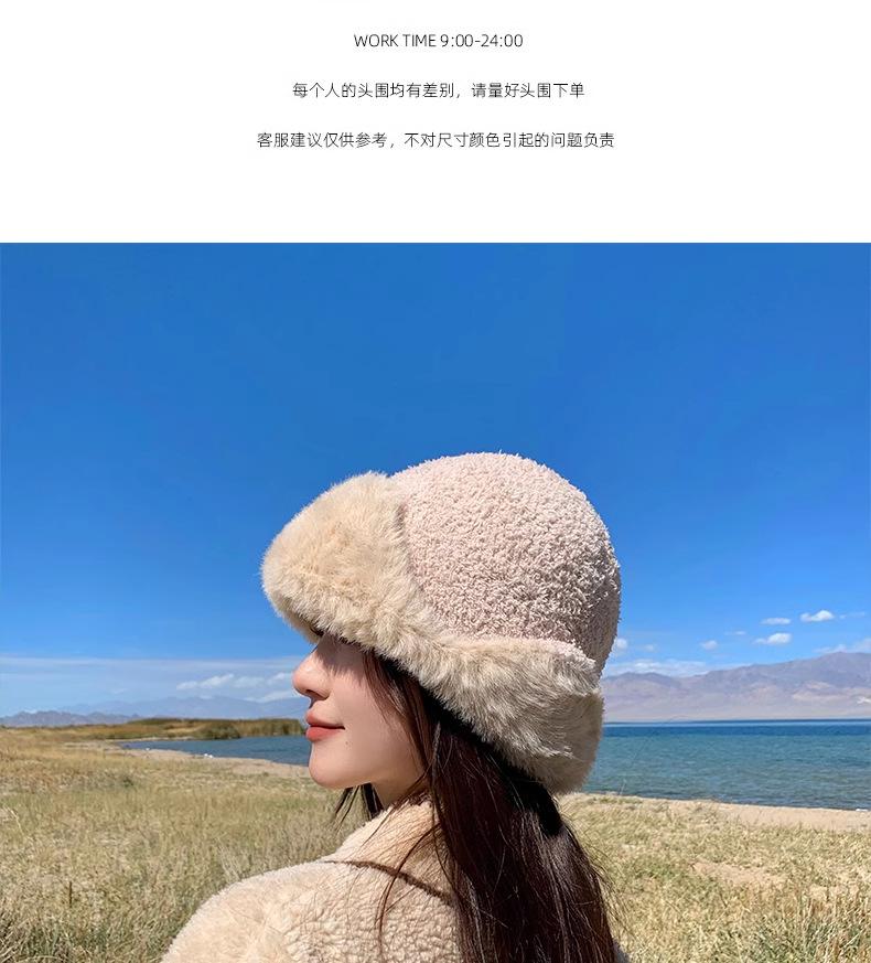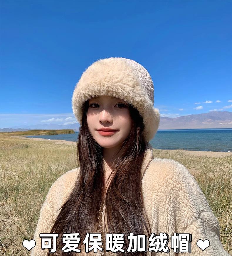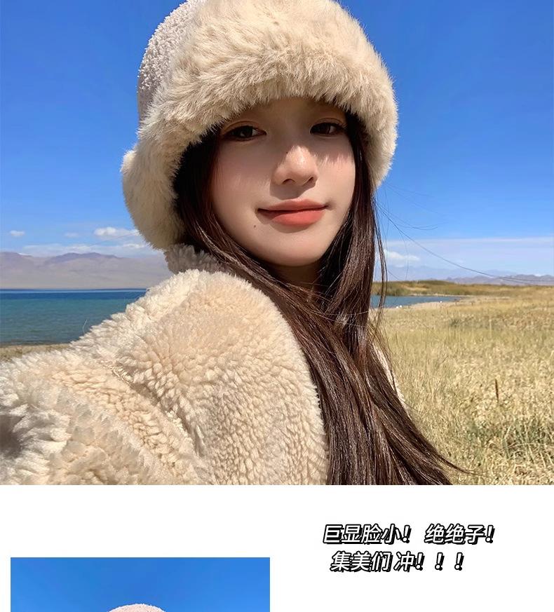 Chapéu Feminino Inverno 2024 Novo Forro de Lã Pulôver Cap Rosto Pequeno Engrossado Quente Outono e Inverno Proteção de Orelhas Pelúcia Chapéu de Malha