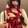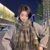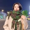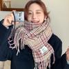 Cachecol xadrez estilo coreano para mulheres outono e inverno novo vintage para todos os jogos lenço branco engrossado quente à prova de frio à prova de vento