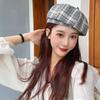 Estilo coreano xadrez vermelho filhote de cachorro para a frente chapéu das mulheres primavera e outono all-match nicho boina grande circunferência da cabeça rosto pequeno chapéu